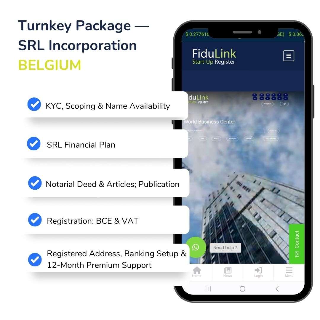 Tags (SEO) : création société Belgique, SRL Belgique, company formation Belgium, immatriculation BCE, plan financier SRL, acte notarié Belgique, domiciliation Bruxelles, TVA Belgique, ouverture compte pro Belgique, business center Belgique, FiduLink Belgique